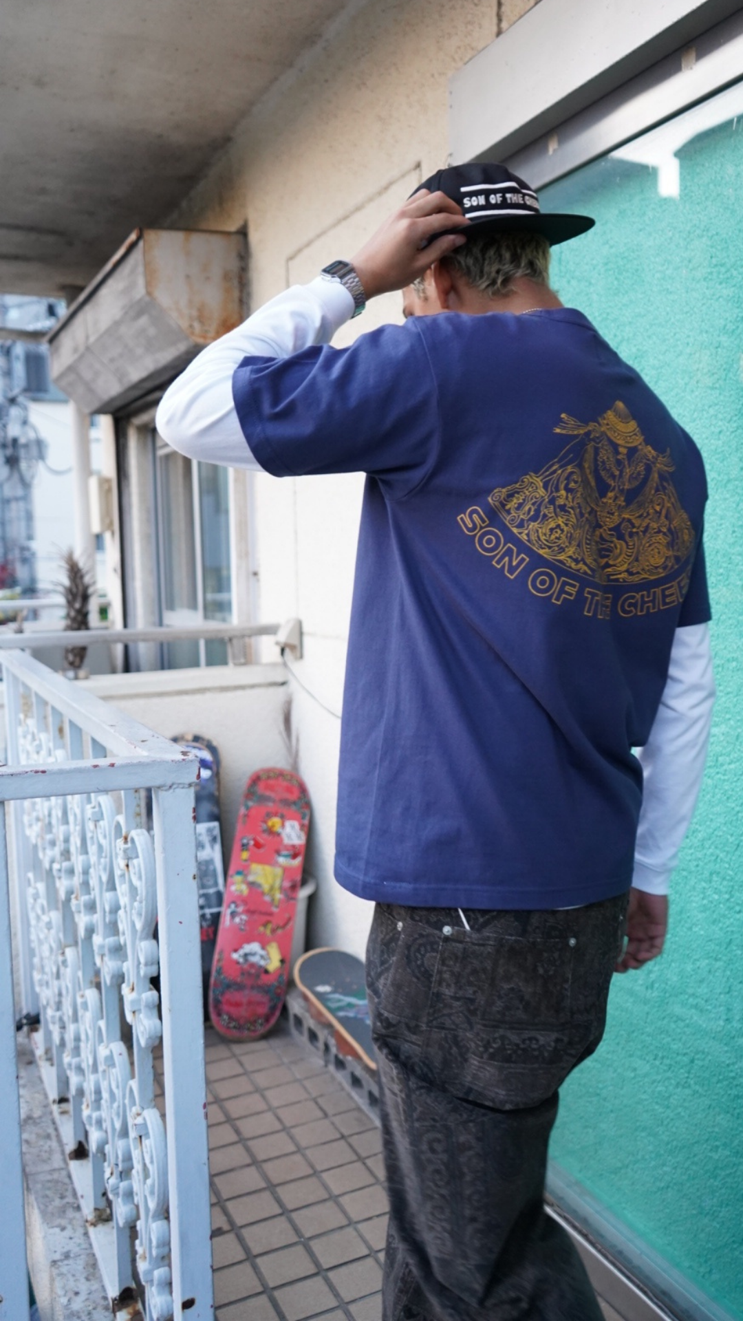 T-shirt with a small graphic reading “Afternoon Delight” on the front; large Son of the Cheese design on the back.