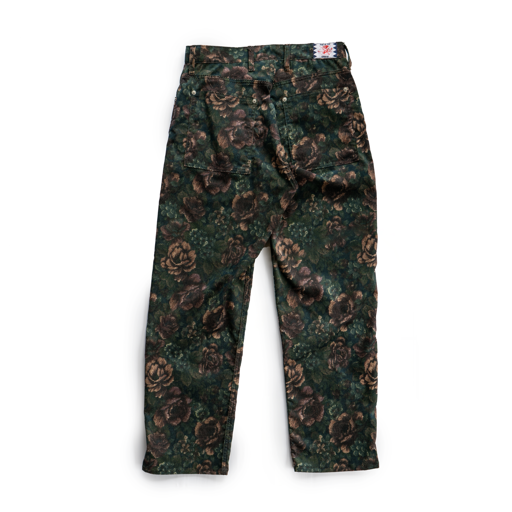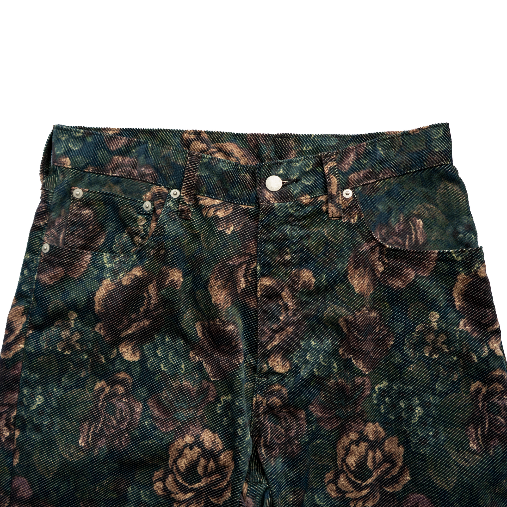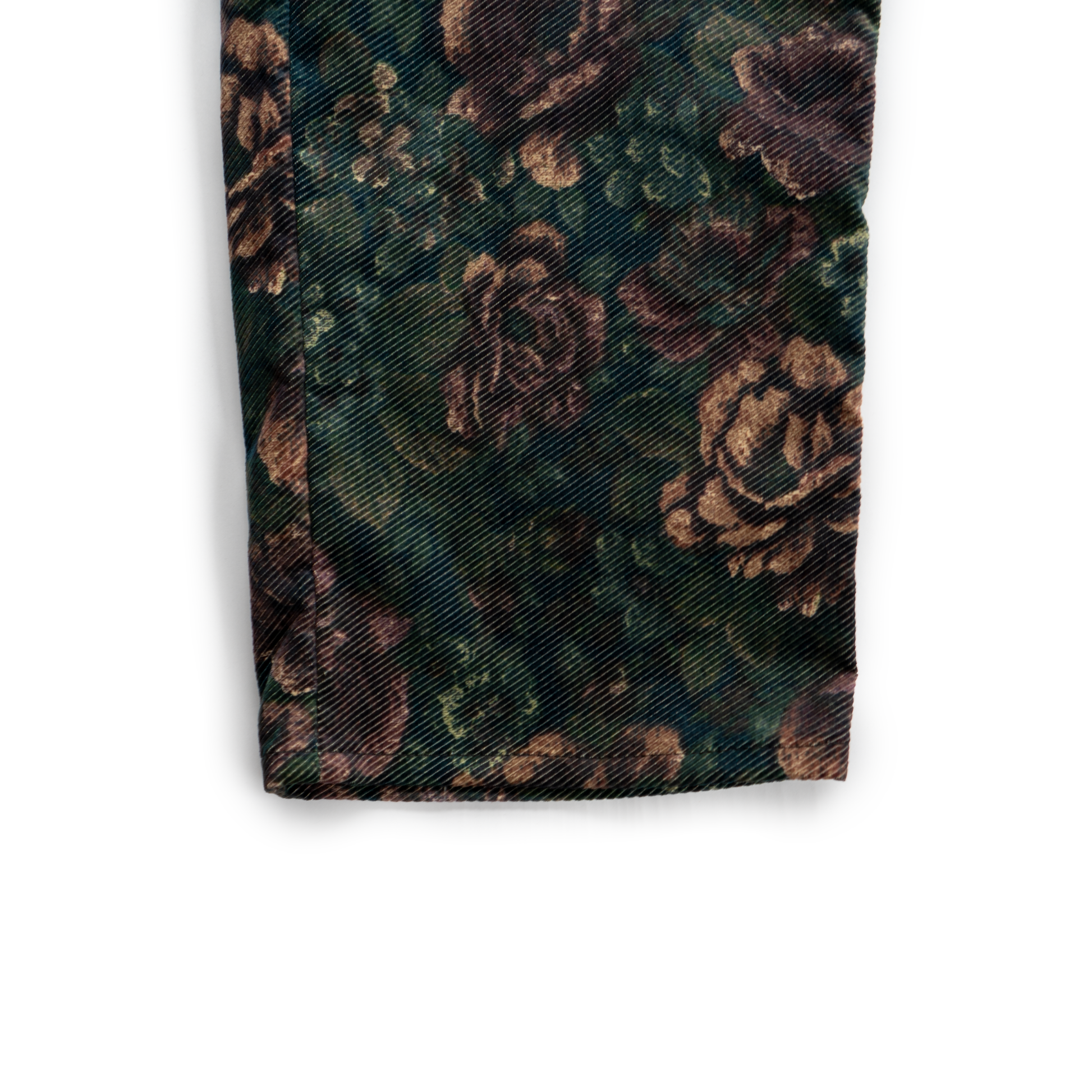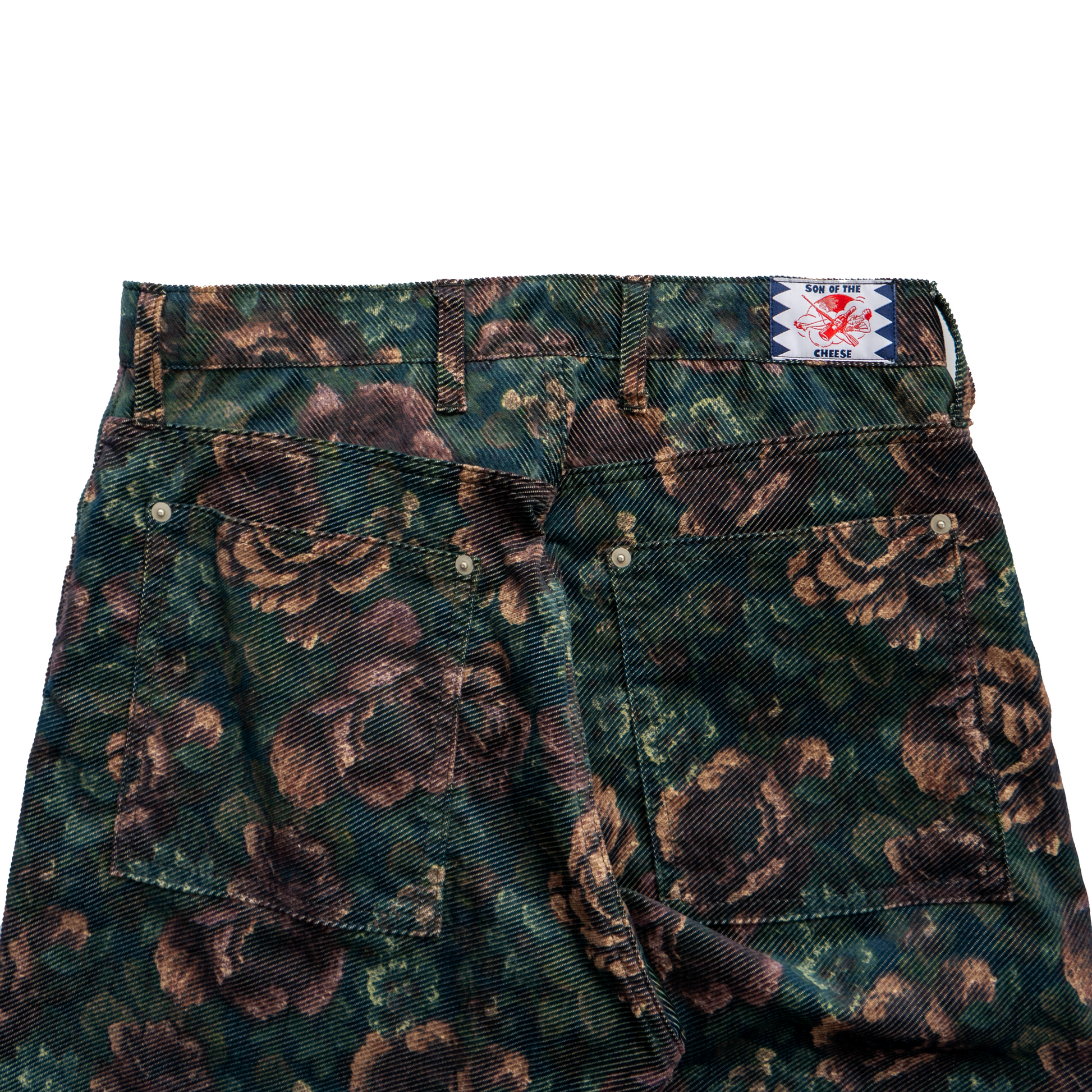 Floral corduroy pants, inspired by the sofa at the original Son ofthe Cheese Pool.