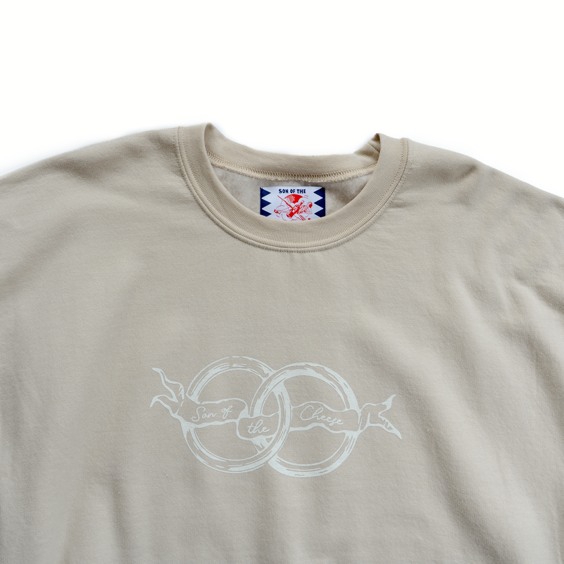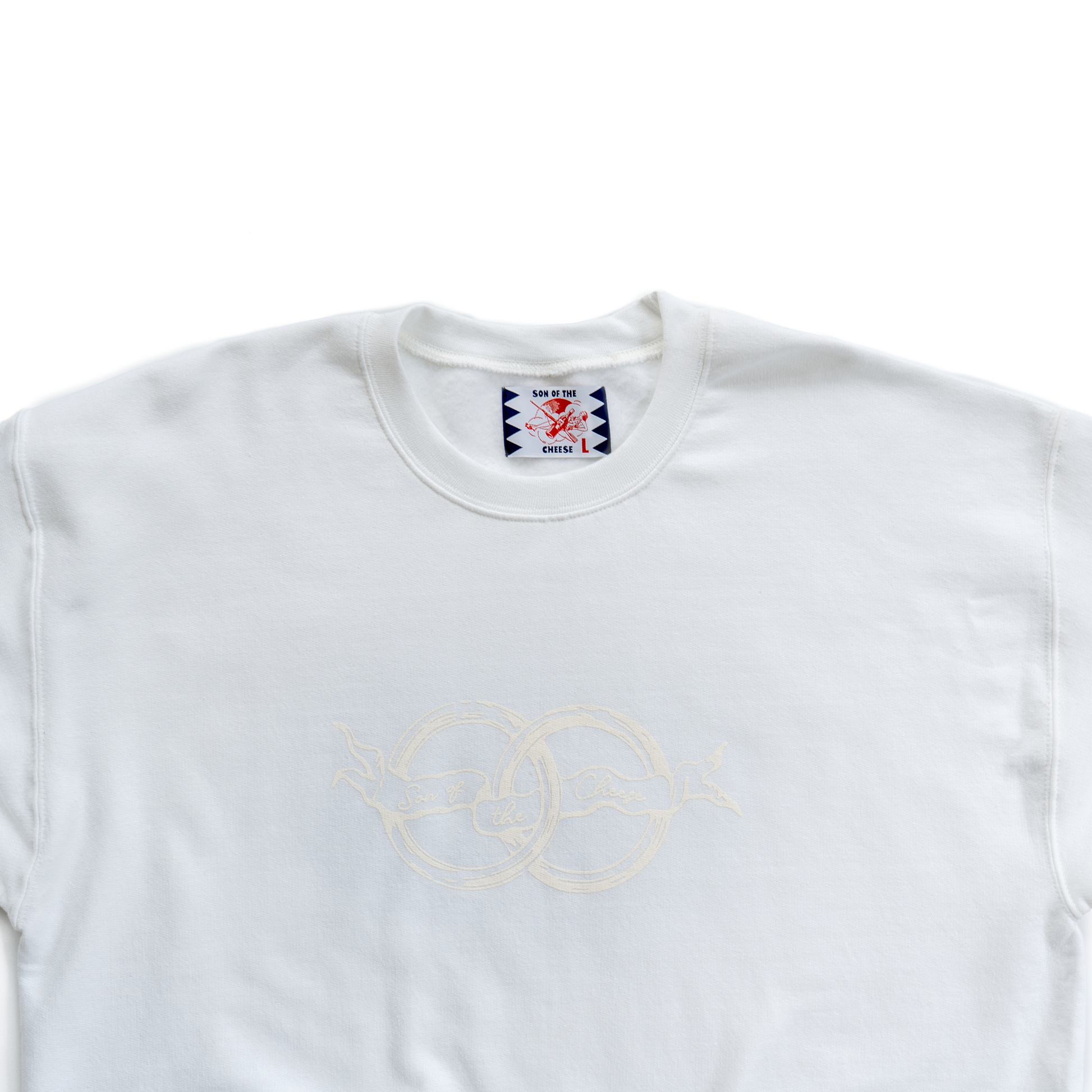 ブランド名を絡めたモチーフを、リング状のグラフィックで表現したスウェット。